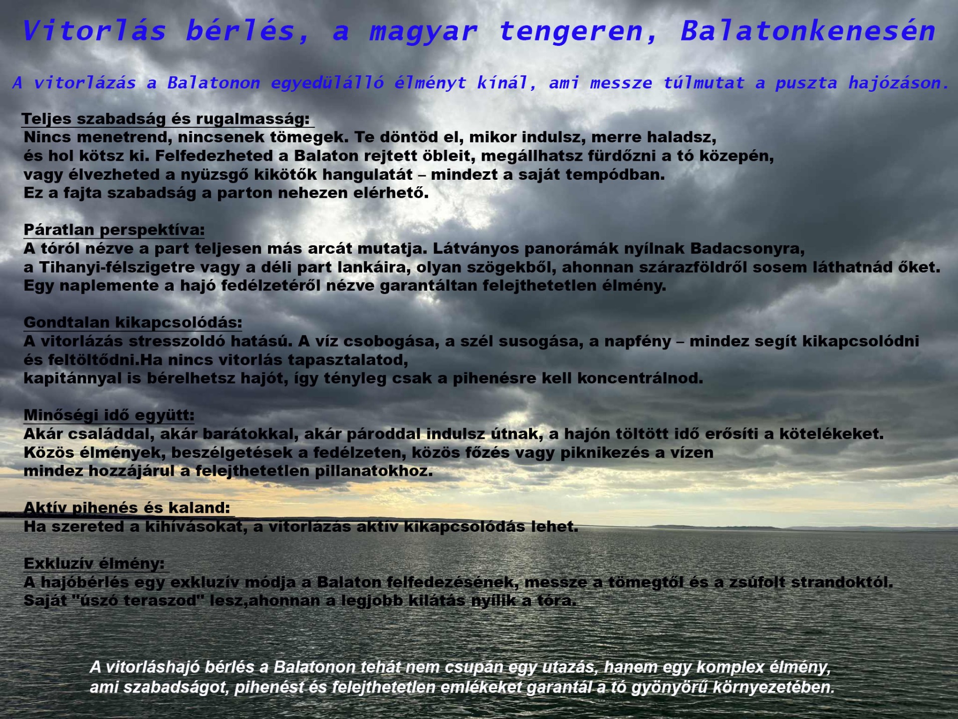 Ha túrahajóval ismered a Balatont nem kell plusz szállásról gondoskodnod, hiszen magaddal viszed a kényelmes, és olcsó szállást.